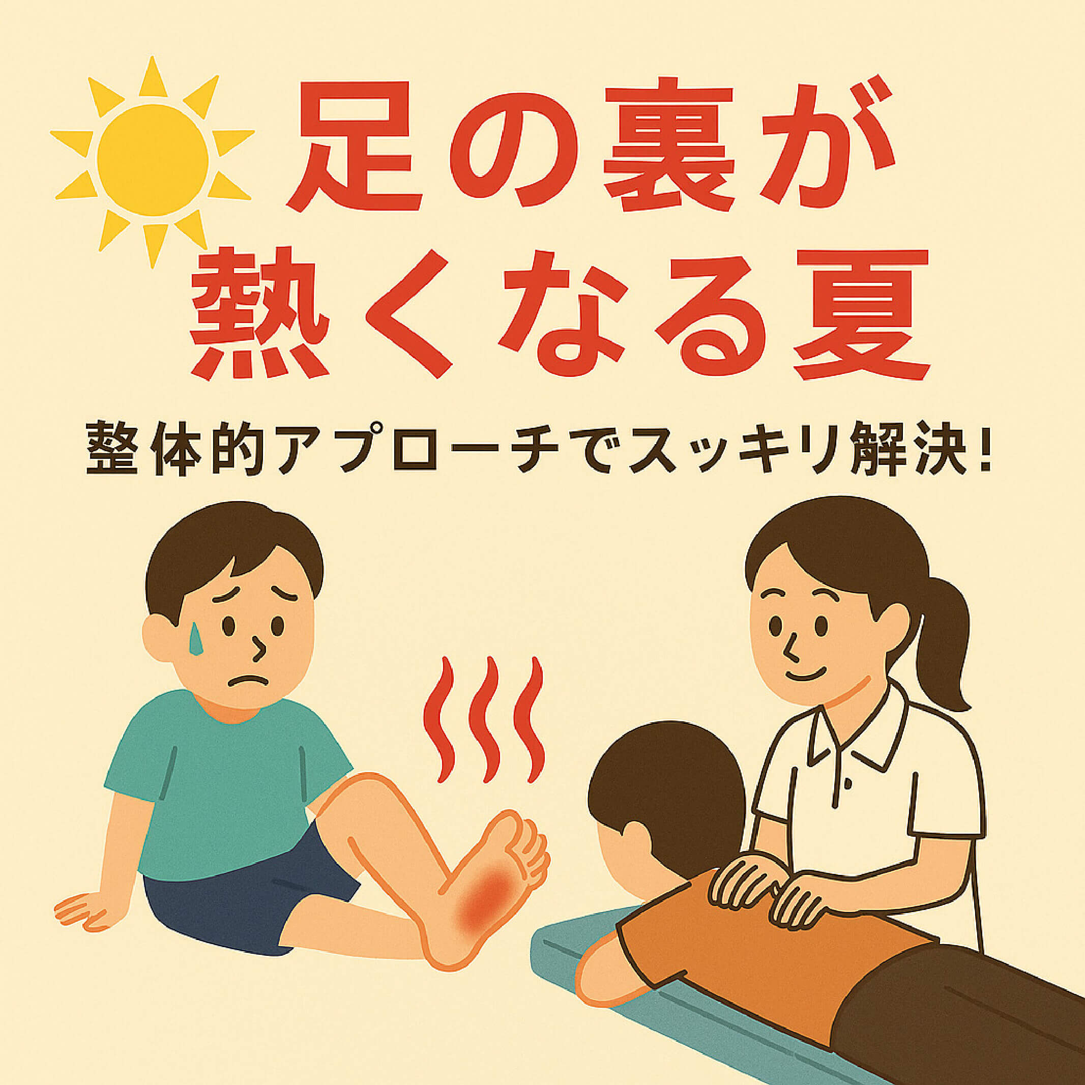 今回は、夏に足の裏が熱くなる原因と、整体的な対策についてご紹介します。