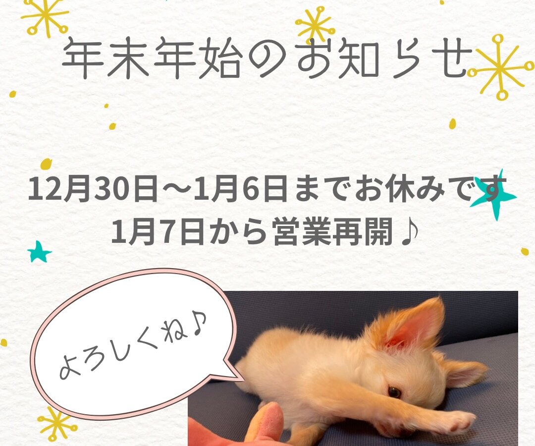 年内は12月29日までの営業、年始は1月7日からの営業となります♪ お正月が1年のうちで、1番好きな行事なので長いお休みを頂きたいと思います(^^) 皆様も、ゆっくりとご自身の好きな時間を過ごして下さいね! 2026年は、天馬の如く飛躍する年にして行きましょう!!